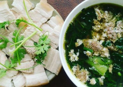 - Rau các loại (rau muống, rau kinh giới, giá đỗ, hành lá)